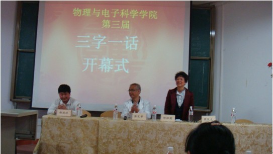 4月25日下午,物电学院团总支学生会举办第三届“三字一话”比赛,开幕式在宁静楼437教室拉开帷幕。到场的领导有物电学院院长邹祖莉、党总支书记蒋定举、周筑文副院长和团总支书记郝进欣。特邀嘉宾有文学院瓦运清老师、王晓丹老师,马列部郭蕊老师,艺术学院路同宽老师、吴超学长、叶明飞学长为此次比赛评委。 开幕式由田然同学主持,在邹院长致开幕词,蒋书记讲话后,比赛正式拉开帷幕。四项比赛分别在致远楼的四个教室同时进行,在各个比赛现场,选手们一个个举止优雅、谈吐大方、专情地发挥各种技能;充分展示物电学子的风采。 举办本次比赛,旨在提高同学们的师范技能和普通话水平,丰富学生的课余生活,同时为同学们提供了一个展示自我的平台。
