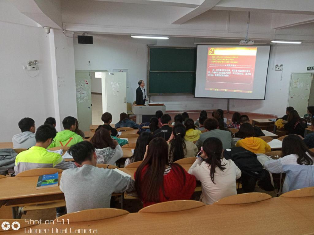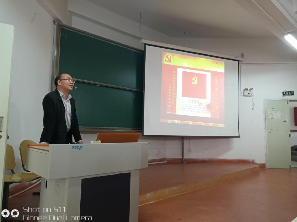 为进一步加深入党积极分子们对党的了解,2018年4月12日12:50,以“中国共产党员的条件、义务和权利”为主题的物理与电子科学学院第45期入党积极分子培训第三次党课在宁静楼437顺利举行。此次培训由物电学院教工党支部书记刘家兴主讲,学院57名入党积极分子参与了此次培训学习。 党课开始,刘家兴让入党积极分子们全体起立,举起拳头,庄严宣誓,激起了入党积极分子们高昂的情绪。接着,刘家兴首先讲解具备什么样条件的同志可以加入中国共产党;其次对中国共产党党员应当具备哪些基本条件和共产党员的行为规范做了详细讲解,并在讲解中结合入党积极分子们的身份,强调大学生党员应当肩负的历史重任。 通过本次党课,进一步增强了入党积极分子们的入党积极性,并表示会更加努力,争取早日成为一名光荣的共产党党员。 (文/陈君君 雷仕娜 图/郑郎 审核:王平瑞)
