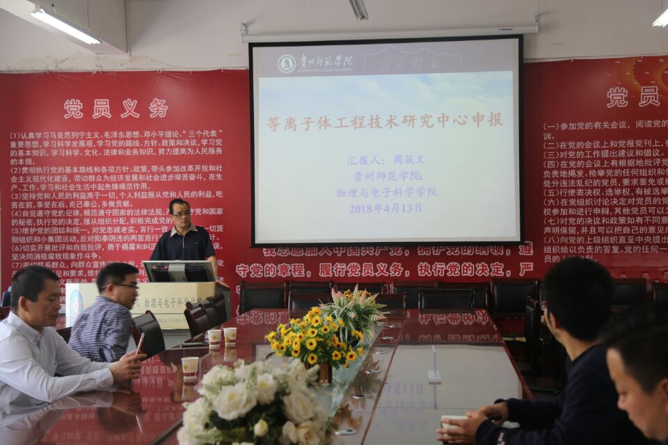 2018年4月13日,贵州师范学院物电学院诚邀贵州省经信委创新处处长易可,副处长陆德才一行,参观了我院的贵州省高校等离子体科研创新团队、贵州省高校光电材料设计与模拟特色重点实验室和等离子体物理应用研究所,指导物电学院的校企合作,产教融合工作。参观之后,周筑文院长对我院等离子体工程技术研究中心筹备工作做了汇报。学院参加会见有陈德良副院长、和陆晨、向坤、吴旭普、陆轴等老师。周筑文院长主持此次会议。 贵州省经信委领导参观了学院等离子体实验室和设备并听取了周筑文的汇报后,易可处长指出看了贵州师范学院物电学院的等离子体研究团队硬件设施齐全、基础扎实、成果丰硕,第一次到贵师院来看见有如此多的科研成果和技术、有较好的科研条件和较强的研发团队,希望物电学院能充分利用好这些科研条件,把取得的科研成果和技术尽快转变为产业,加强学校与企业之间的深度合作,经信委将从政策上、经费上积极鼓励和支持物电学院的校企合作的科研项目,并同意将把贵州省一些企业的项目需求介绍给我院,促进企业与高校对接,经信委可以作为企业与高校的桥梁,推进校企合作,促进贵州省企业经济与高等教育事业的共同发展。 (文图/向坤 审核/周筑文)