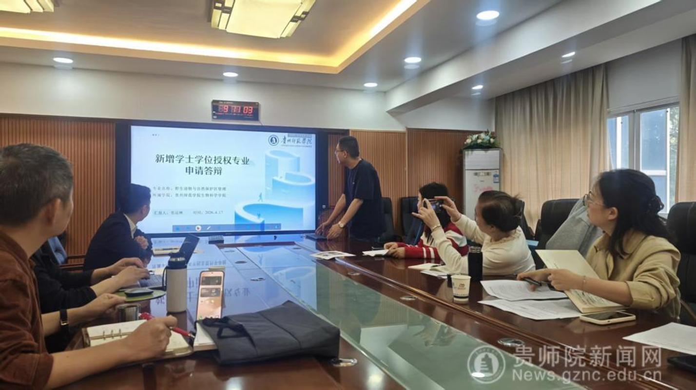 凝心聚力迎自评 扎实推进学位授予 —— 物电学院参加新增学士学位授予专业授权校内自评 为扎实做好新增学士学位授予专业授权工作,确保以最优状态迎接省级评审,2026年4月17日上午,贵州师范学院新增学士学位授予专业授权集中汇报与支撑材料评审会在明义楼142会议室召开。质评办主任李艳琴、副主任吴娇、科长张雪梅,以及张颖、周筑文、刘启燕、文君、高成贵、谢辉、杨光学、付宏等校内督导专家出席会议。物理与电子科学学院副院长蔡晶全程参会,集成电路设计与集成系统专业负责人余宏代表学院作汇报,与专家组深入交流、精准对接,全力推进集成电路专业学士学位授予权申报工作。 会上,余宏围绕专业建设及人才培养、师资队伍、教学资源及利用、培养过程及管理、学生发展五大模块,全面汇报集成电路专业建设成效、支撑条件与发展规划,系统展示师资力量、实验实训、产教融合、人才培养质量等核心成果。专家组对照5个一级指标、22个二级指标,对汇报内容与支撑材料进行严格预审,围绕数据一致性、材料规范性、资源核算方式、PPT 呈现优化、特色亮点凝练等方面提出具体改进意见。蔡晶与余宏认真记录、主动问询,就共享实验室面积核算、仪器设备使用效益、师资结构优化、实践基地建设、特色成果提炼等重点问题与专家深入交流,逐一明确整改方向与优化路径,确保问题整改精准到位、材料支撑扎实规范。 下一步,物理与电子科学学院将严格按照学校部署与专家意见,在规定时限内完成材料完善与整改提升,强化核心指标支撑,规范数据呈现,做好模拟答辩准备,以高标准、严要求推进集成电路专业学士学位授权申报各项工作,确保顺利通过省级评审。