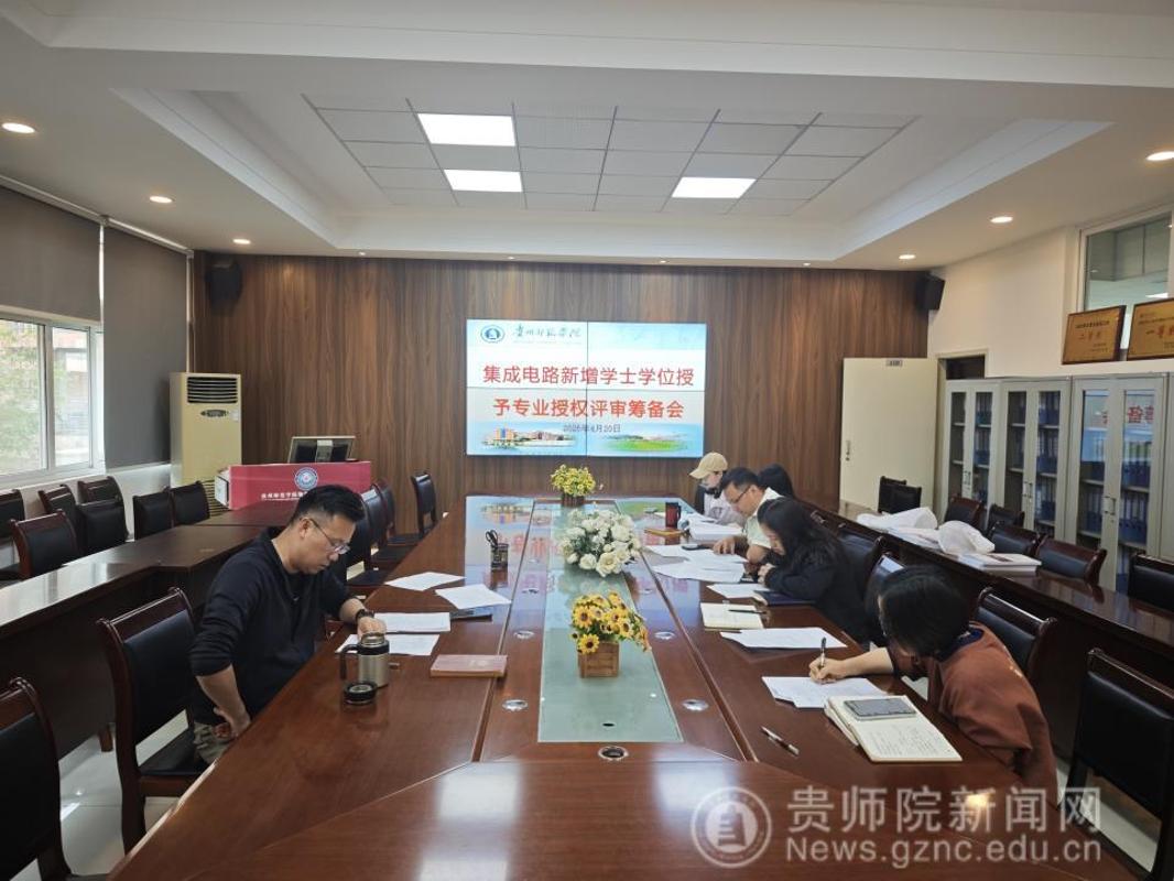 对标整改再冲刺 全力以赴迎评审 ——物电学院召开集成电路专业学士学位授权省级评审冲刺部署会 为全面落实校内自评专家整改意见,全力冲刺4月24日省教育厅学士学位授权评审,4月20日下午,物理与电子科学学院在学院 419会议室召开集成电路设计与集成系统专业学士学位授予权申报省级评审冲刺筹备会。学院教学副院长蔡晶、集成电路专业负责人余宏及工作组教师参加会议,会议围绕校内评审整改要求与省级评审指标体系,逐项对标、精准部署,确保以最优状态迎接省级评审。 会上,蔡晶副院长传达校内自评专家组反馈意见,明确省级评审核心要求与时间节点,强调全体教师要提高政治站位、强化责任担当,以对表对标、逐项整改、不留死角的原则,扎实推进各项筹备工作。余宏主任结合《贵州省普通高等院校新增学士学位授予专业授权评审指标体系》,对校内自评指出的材料规范、数据一致性、特色亮点凝练、支撑材料完善等问题进行逐条解读、逐项分解,清晰明确每位教师的整改任务、完成时限与质量标准,确保整改责任到人、落实到位。针对因授课未能到场参会的教师,余宏主任逐一进行线上联系,一对一传达会议精神、细致讲解整改要求,确保各项任务全覆盖、无遗漏。参会教师围绕支撑材料完善、核心指标补强、汇报内容优化等重点工作深入交流、逐项核对,全面查漏补缺。会议要求,全体负责教师要严格对照省级评审标准,规范材料装订、强化指标支撑,认真做好汇报PPT打磨与模拟答辩准备,以严谨细致的作风保障整改落地见效。 此次冲刺部署会进一步统一思想、压实责任、明晰路径。物理与电子科学学院将紧盯目标、全力以赴,高标准完成各项整改与筹备工作,确保集成电路设计与集成系统专业顺利通过省级学士学位授权评审,为学院专业建设与人才培养高质量发展筑牢根基。